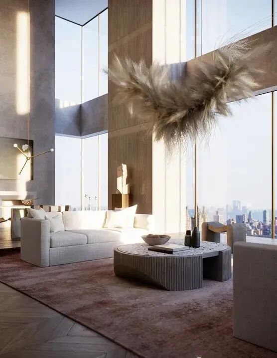 室内设计简约而奢华,全景落地窗引入自然城市景观,为室内空间带来***的装饰效果。