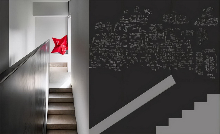 通往二楼的楼梯,有一面墙,写着近千位名人的名字,其中有设计师,也有艺术家。那是典尚设计南宋老院子的一面签名墙,在2004-2016的12年间,世界各地的艺术家、设计师朋友们造访时留下的鲜活而有温度的友情痕迹。他将这份特殊的友情装进了光合院,将岁月和故事延续。
