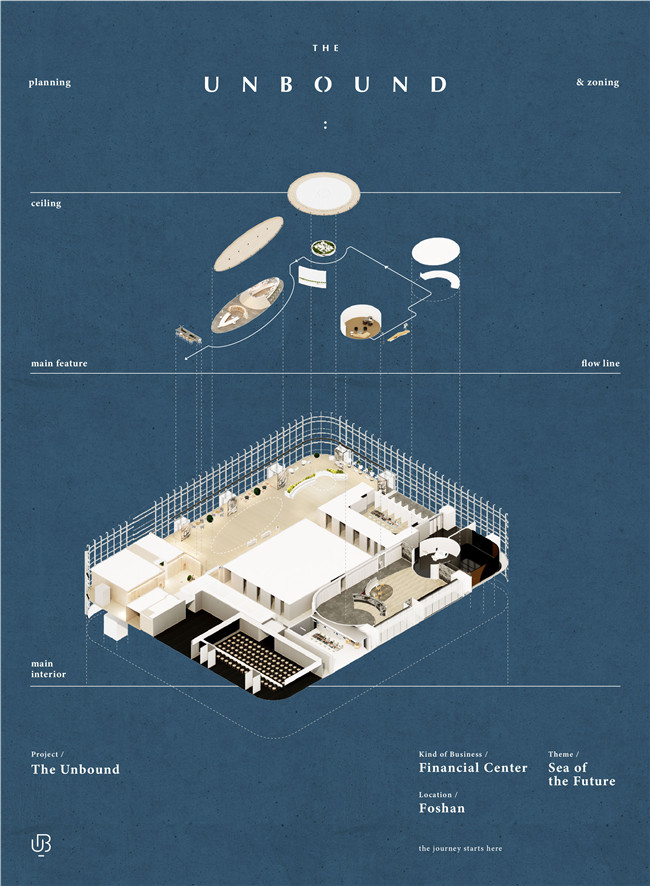 基于都市白领们对于精神与生活质感的追求,峻佳设计与羽果设计一起,以佛山迅猛的经济发展为时代基础,为佛山万科创造场景的“无界”结合未来感的“方舟”主题的游逛体验。