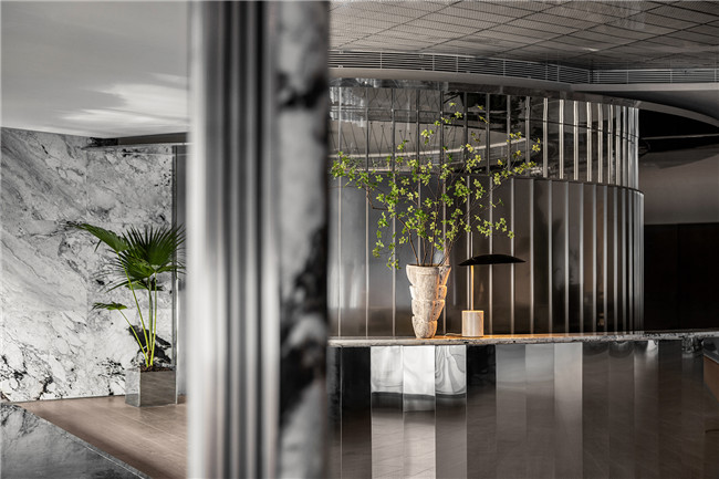 设计师在空间中将不锈钢以各种不同的形态加以独特使用,为客户营造灵动式的空间视觉与触觉的体验。