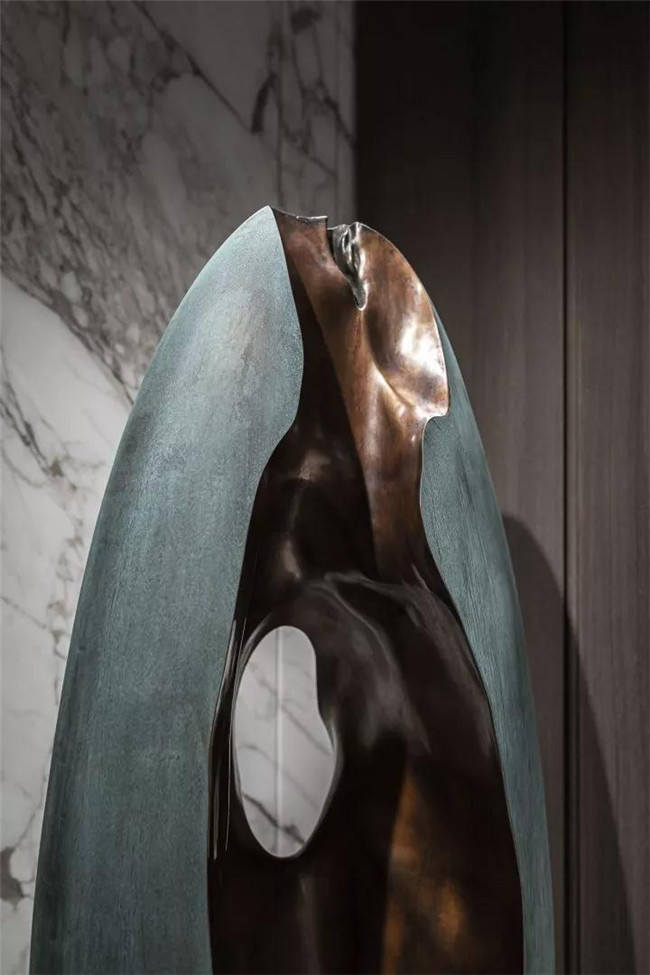 设计师们精心挑选出乌克兰著名的雕塑家Yegor Zigura和Nazar Bilyk的作品的艺术品补充了这个空间的理念。