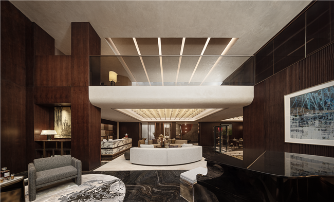 当第一缕混合着雪松与冷泉的气息漫过鼻尖,脚步便不自觉慢成了普鲁斯特式的漫游者。宽敞的大堂宛若通透的嗅觉剧场,线条灯以平行光瀑切割空气,将雪松香的轨迹染成淡金色的绸带。当新风系统携着松针滤过的风穿过发梢,人们忽然读懂赫尔曼·黑塞的箴言:“真正的生活始于嗅觉苏醒的刹那”。