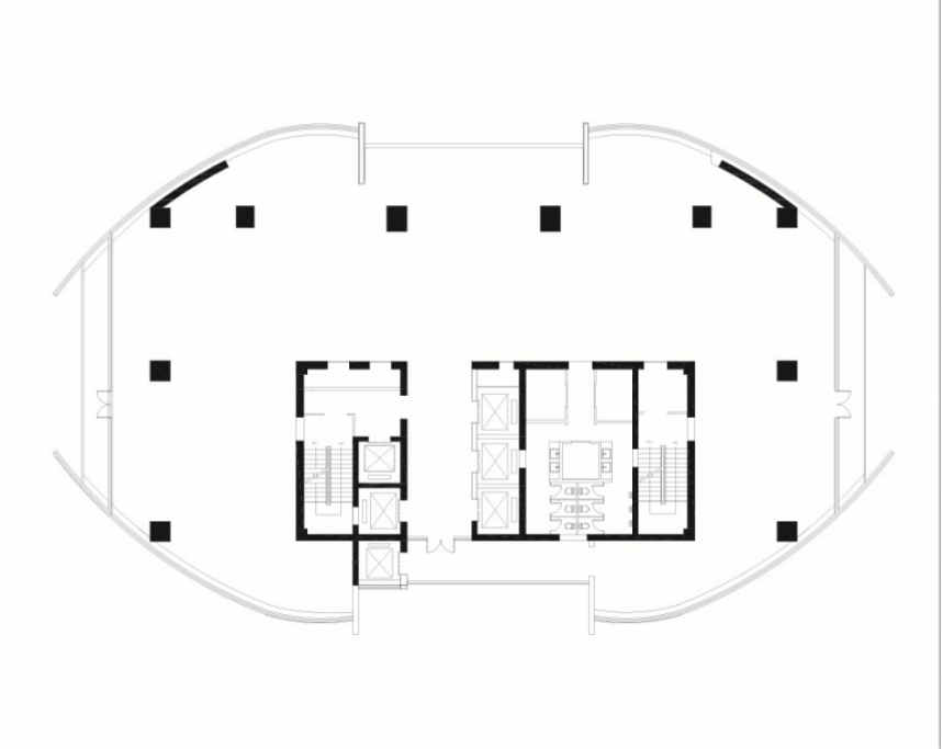 项目初始为一个巨大的不规则椭圆空间,除开外围玻璃幕墙,整个空间仅由10根钢筋混凝土承重柱和两小段弧形外墙作为支撑。
