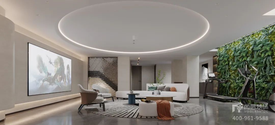 身处繁华,归于自然平淡,设计师结合业主诉求,将自然肌理附于地下空间,一面绿植墙,打破地下空间的沉闷与闭塞,带来自然的舒适与自由,用空间创造的语境滋养于人。在添入疏密有序的软装装饰空间,在勾勒流畅空间动线的同时又让整个地下空间兼具功用性与舒适度。