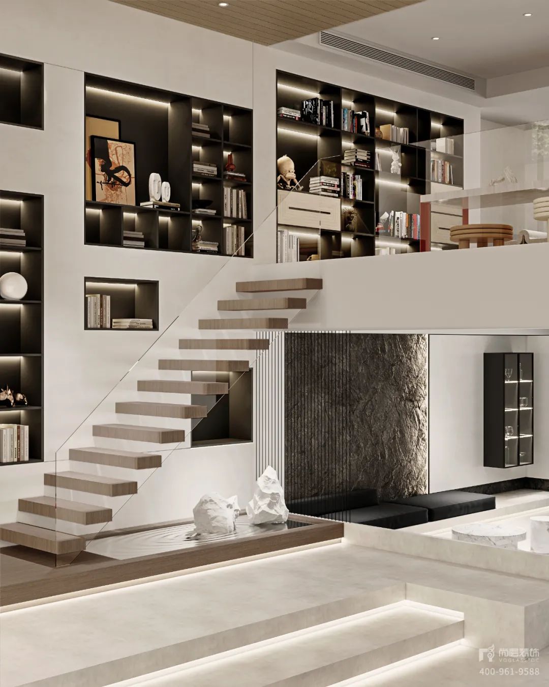 流光浸染岁月,斑驳收敛轻狂,木质与大理石的格调极尽内敛,不事张扬。轻柔的光影聚焦在每一格生活日常的时光里,情绪在水波潋滟的冲刷下洗去了历经都市嘈杂的疲累。拾阶而下,随光而往,匠心的设计让快节奏的生活变得慢且丰盈。