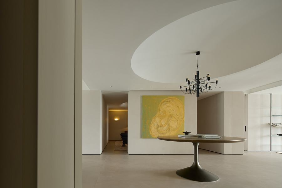 因为对彼此的许诺,离开与父母生活的家,筹备婚房,是组建彼此心家的开始,也是真正意义上对彼此未来共有生命情感记忆的践诺,是 “把房子住成家”的持续守护。LICO相信,“没有功能”才是最好的空间。没有功能,让人内心足够静,足够安定,产生足够的空间,从而产生持续互动的可能。有互动,爱流动得起来,才能感受彼此的温度和气息,才有可能把房子住成“家”。 —— Huizhou,China 惠州,粤港澳大湾区 2022 THE IDEAL LIFE OF PRIVATE HOUSE 理想生活之华润万象天汇私宅 收纳万象 一半确定 一半可能 # Mature # Calmness # Sense of Ceremony Everything is included. HUIZHOU,CHINA 2022 BACKGROUND 服务背景 服务 理想生活全案 领域 私宅 I 大平层 客户 华润·万象天汇 95后业主 DEMANDS 理想生活诉求 华润·万象天汇私宅的业主是一对年轻的95后,女主人具有留学经历,干练细致;男主人则是职业拳击手,沉稳少言。对“极简生活”的理念接受度颇高,偏爱有仪式感的生活氛围,对细节和品质的要求也极为看重。设计完成后的这套房子将作为婚房,成为两位主人共同迈入人生新阶段,构筑彼此心中理想之“家”的新起点。 50%DESIGN:收纳万象 一半确定 一半可能 接受此次全案设计委托,LICO团队尤为重视。因其不仅肩负着一对年轻夫妇第一个“爱巢”设计者的角色,它还将承载并记录一个新组“家庭”未来生活中,更多专属而丰富的生命情感记忆。 因此,本案围绕“收纳万象,一半确定,一半可能”的设计策略展开,旨在为这个新组之“家”铺垫一个足以迎接未来的“内敛,安定,具仪式感”的理想生活基调。 内敛,散发的是一种成熟担当的魅力。人生来到“结伴为家”的阶段,意味着两个独立生命,开始朝着共同的方向,笃定地,彼此为伴,向内深度觉知,整理,连结,逐步趋向人格成熟,以携手拓展更长远的生命轨迹。 设计整体构思上是对主人生活的一次归整与主人性情的一种隐约表达。日常生活活动的大多数功能性设计和设备,都被尽可能地嵌入空间骨架,与空间融为一体,需要时,可便于主人使用,不需要时,只有空间和人。 家是一面生活的镜子,或是慌忙杂乱,或是安定沉静,或是趋向物化,或是趋向精神。空间会产生某种环境磁场而影响人的心绪,设计师几乎将所有日常生活功能性都收纳起来,大面积的留白,使它呈现出一种简单清晰的确定性,以及一种想要闲下来做些什么的交互性,从而让这个“家”产生一种放松得下来的安定感,以及某个时刻燃得起热情的仪式感。 深深祝福。